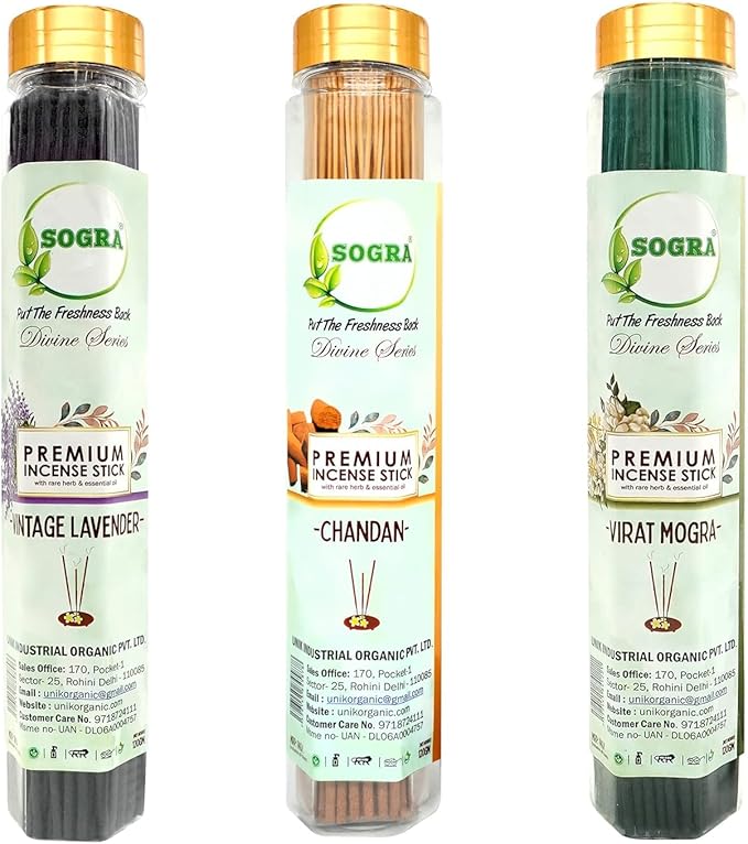Sandalwood, Chandan, Mogra, Lavender, Rose, Loban, Frankincense, Patchouli